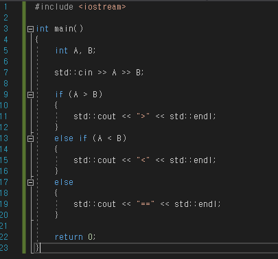 - A가 B보다 큰 경우에는 '>'를 출력한다.
