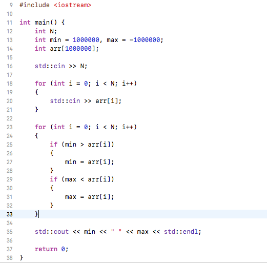 첫째 줄에 주어진 정수 N개의 최솟값과 최댓값을 공백으로 구분해 출력한다.