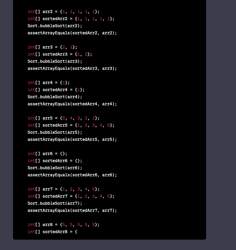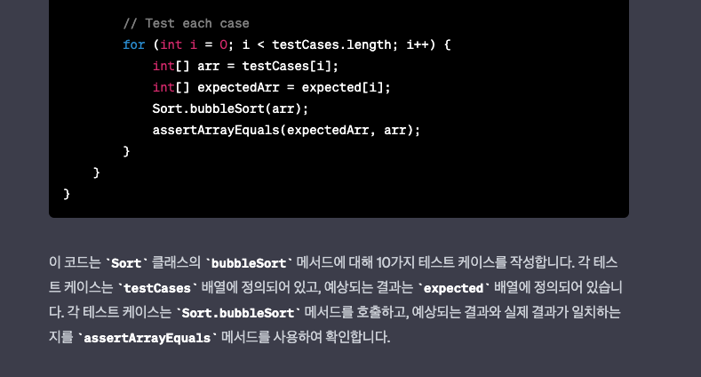 코드를 작성할 때 제 코드에 문제가 없을지 확인할 수 있습니다. 아까 생성한 bubble 정렬에 대해 오류를 확인할 예정이며, 일부러 ‘이 부분도 잡을 수 있나?’ 싶은 부분을 수정했습니다.