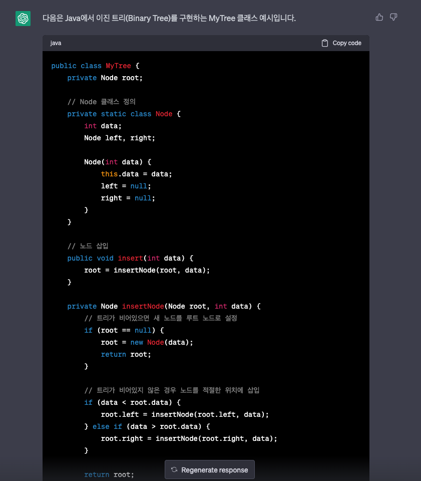 chatGPT의 응답은 다음과 같습니다.