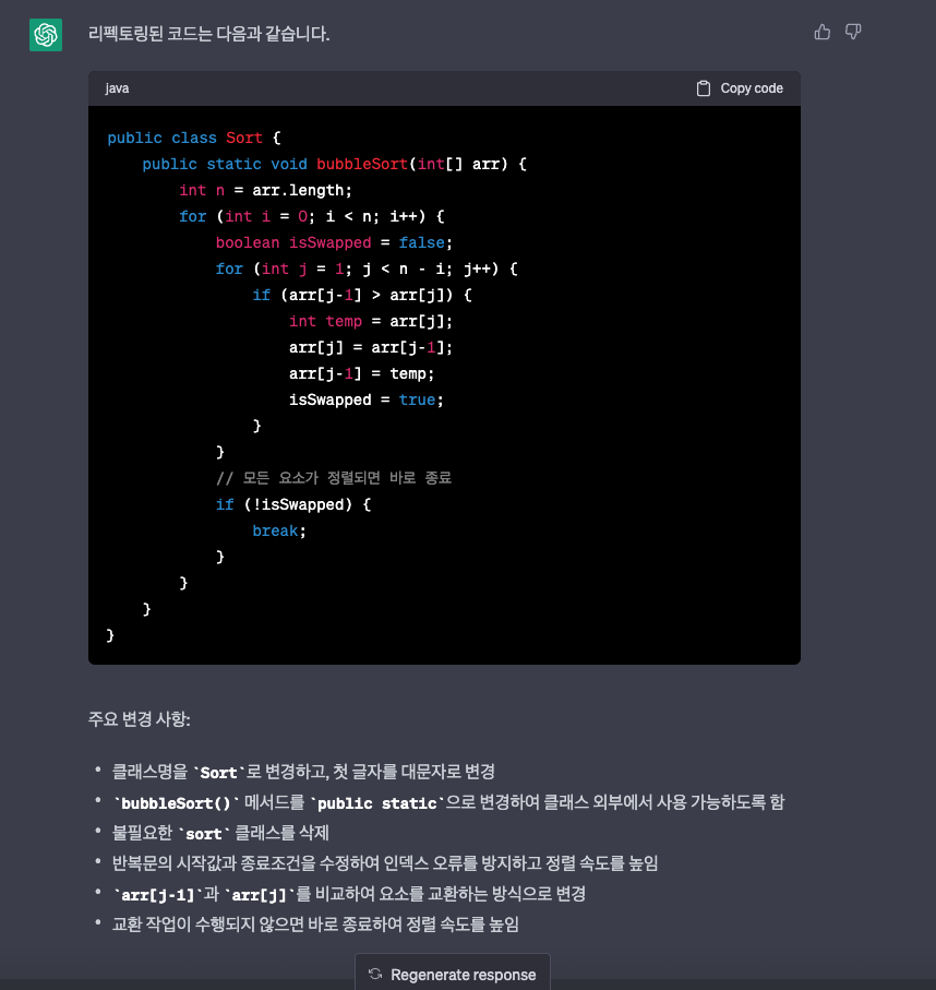 chatGPT가 저에게 준 코드에 대해서 리펙토링을 부탁해 볼게요.