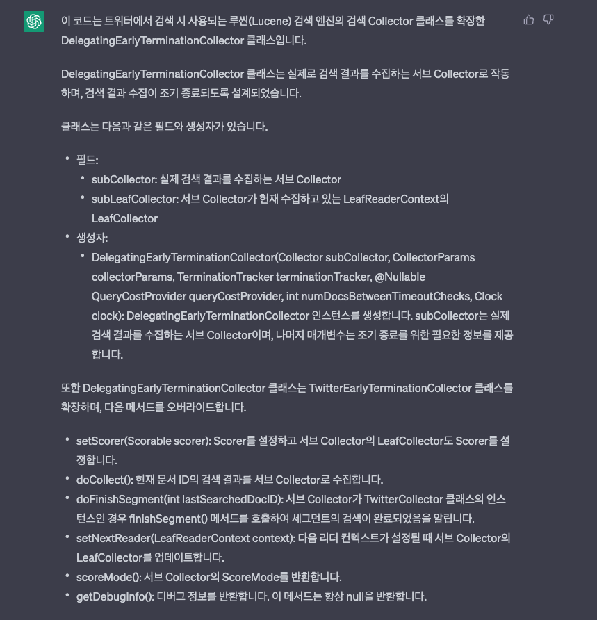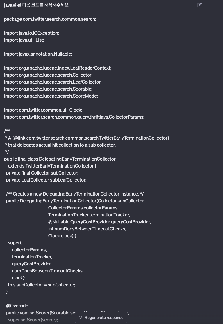 바로 테스트해보기 위해서 최근에 아주 핫한 내용인 ‘트위터 검색 알고리즘 오픈소스’를 chatGPT에게 해석을 맡겨봅시다.