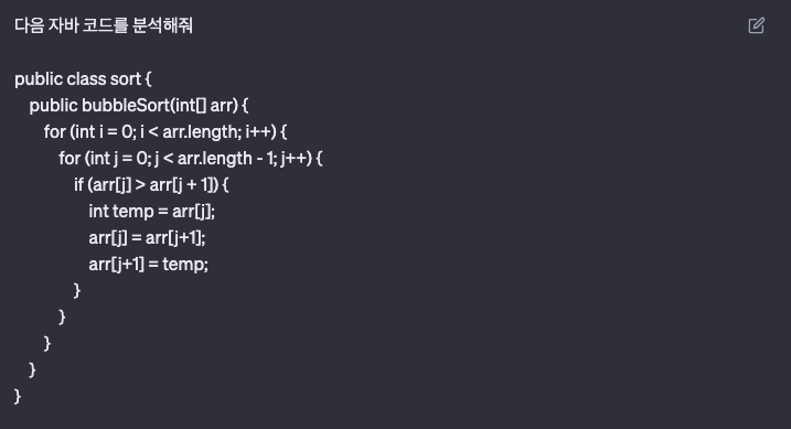 간단하게 다음과 같은 코드를 chatGPT에게 분석을 요구한다고 가정해 봅시다.